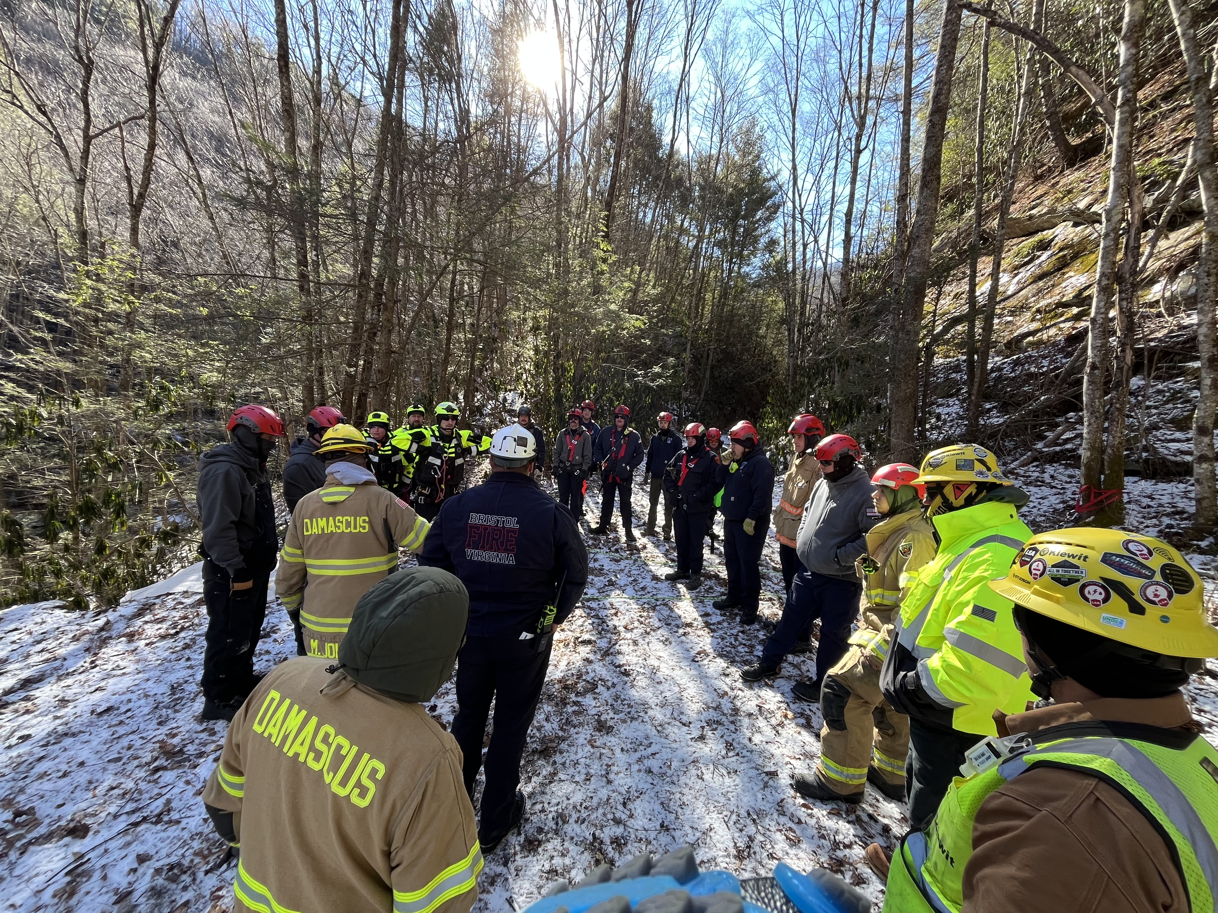 Throughout January, Kiewit coordinated with local emergency services to conduct a mock rescue drill. The exercise, held on Jan. 20, focused on preparedness and hands-on training for all parties involved. Participating agencies included the Damascus Volunteer Fire Department, Abingdon Fire Department and the Bristol, Virginia Fire Department Task Force 4 Technical Rescue Team. This coordination supports ongoing safety planning for the Virginia Creeper Trail Reconstruction Project and reflects continued collaboration with the Town of Damascus, City of Abingdon and City of Bristol, Virginia.